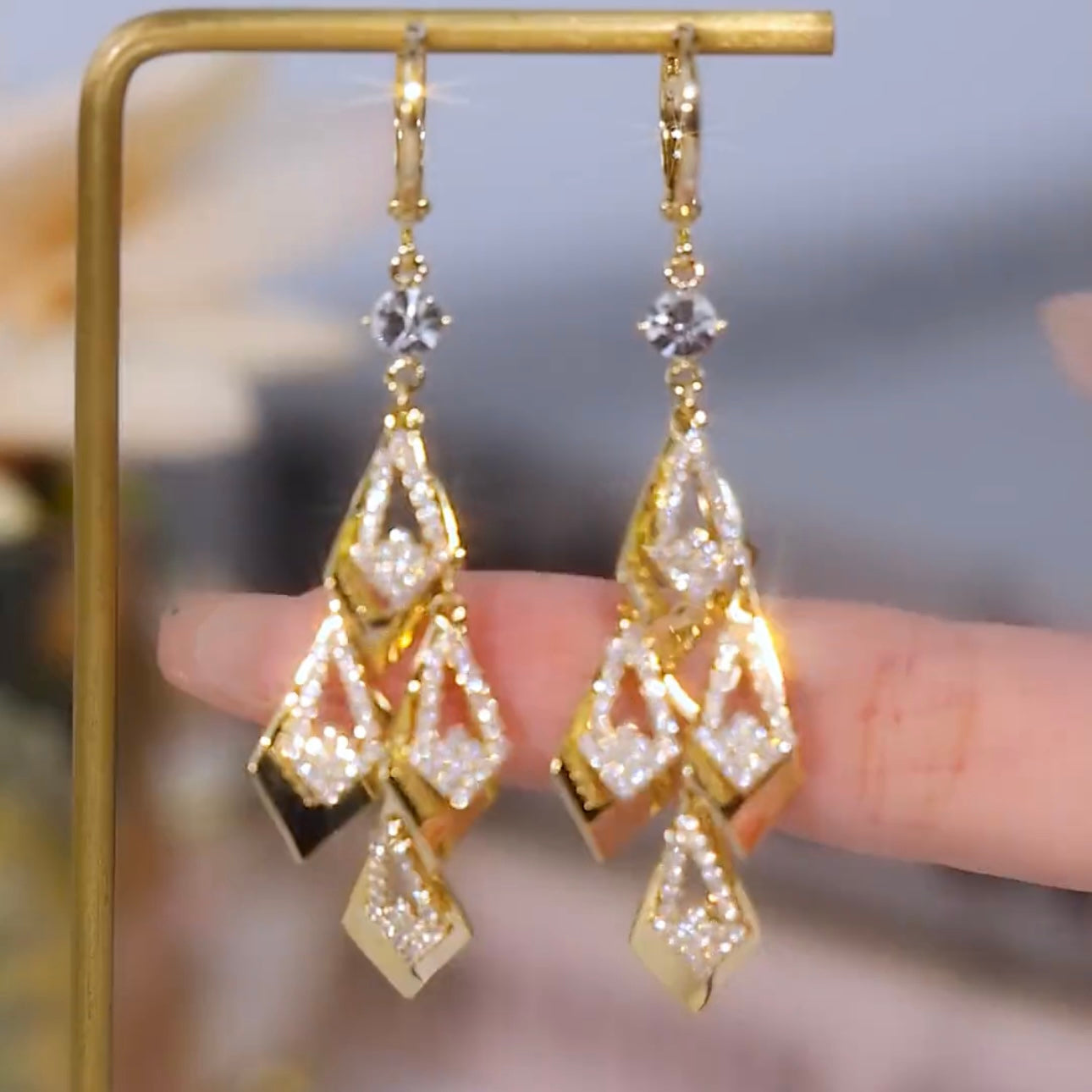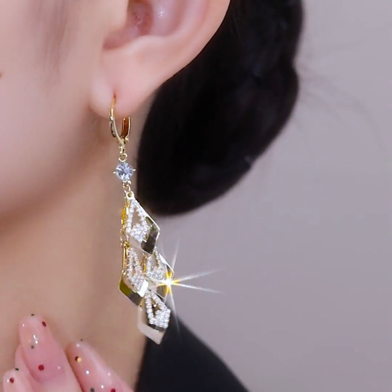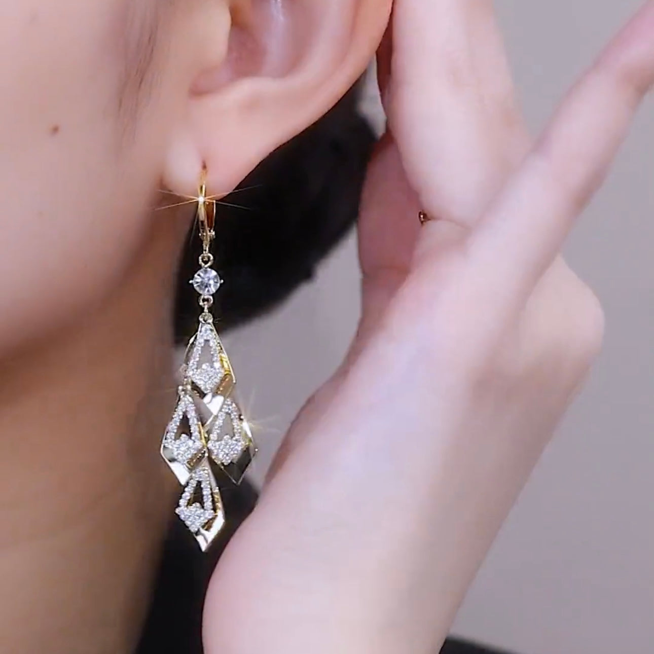 Diamant-Ohrringe, einzigartiges Design, lange Blatt-Ohrringe für Damen