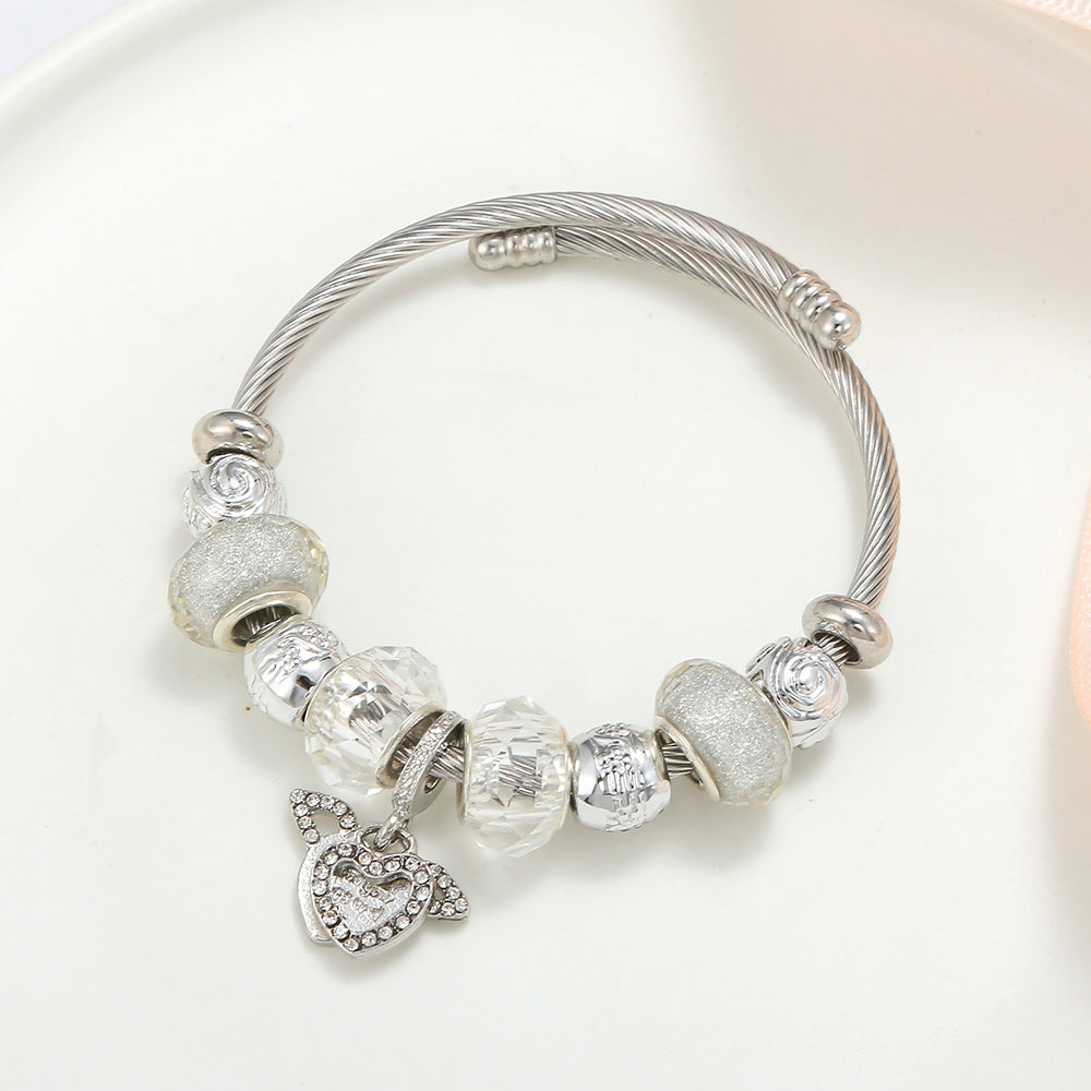 DIY Offenes Edelstahlarmband für Frauen Rosa Heißluftballon Engelsflügel Anhänger
