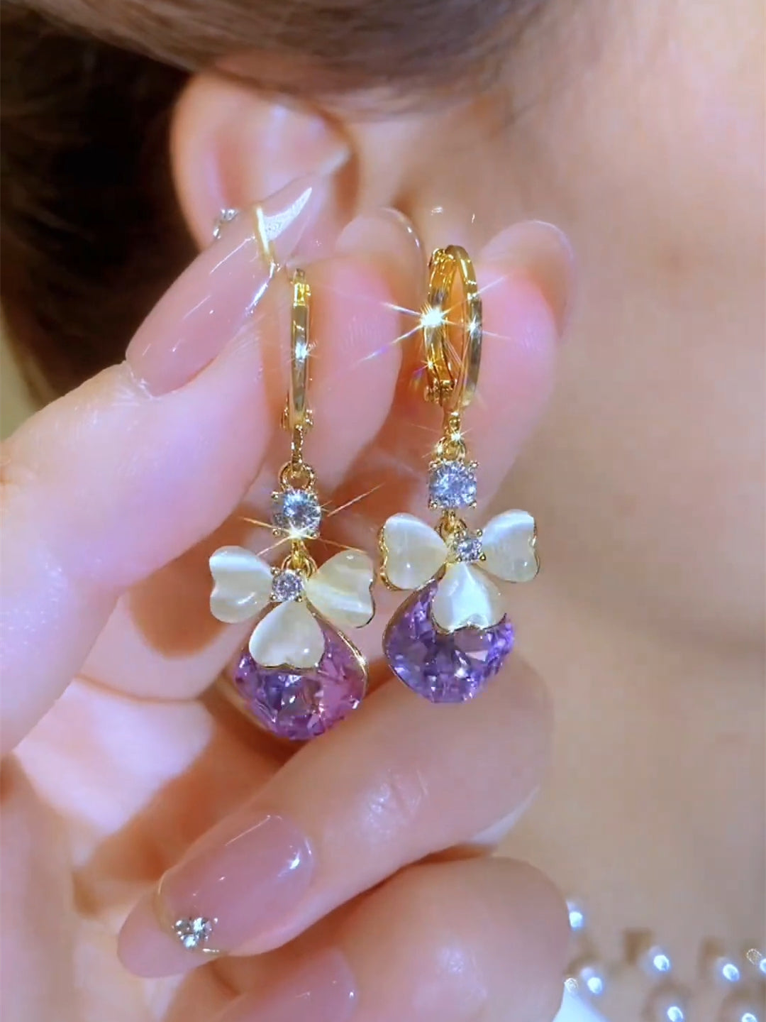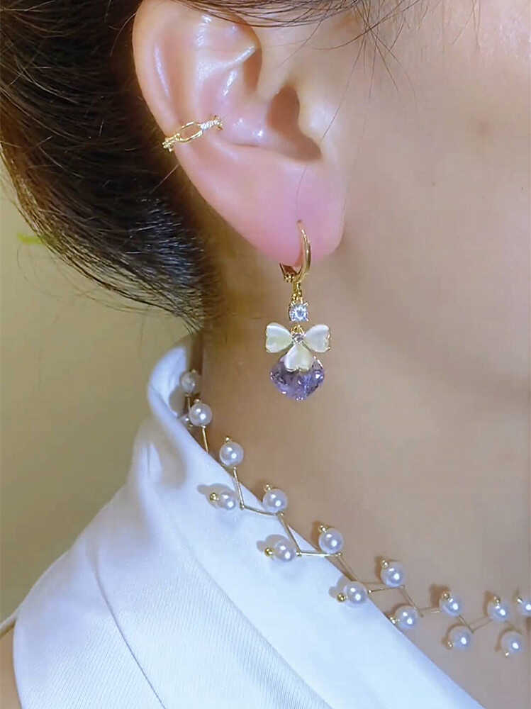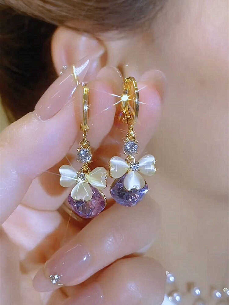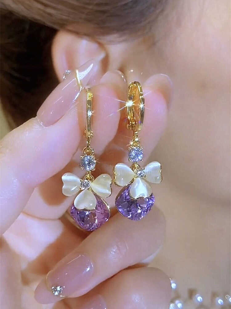 Exquisite Design Fashionable Petal Purple Water Drop Earrings