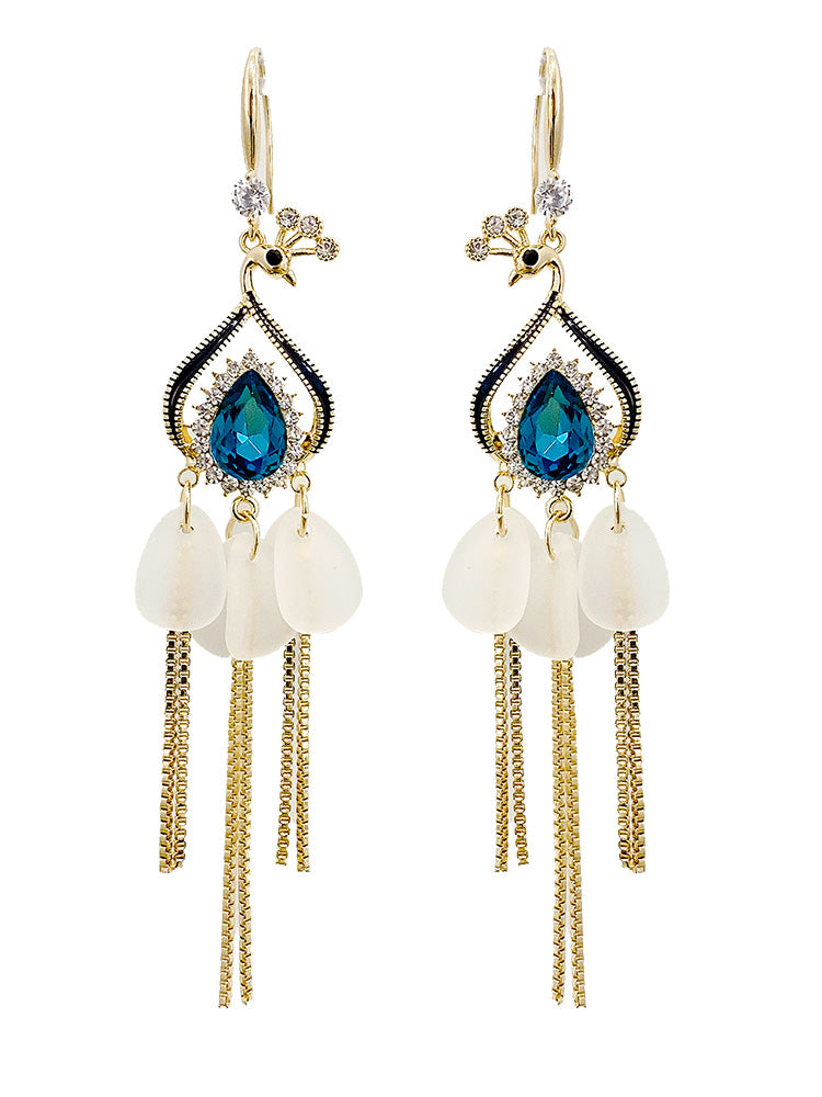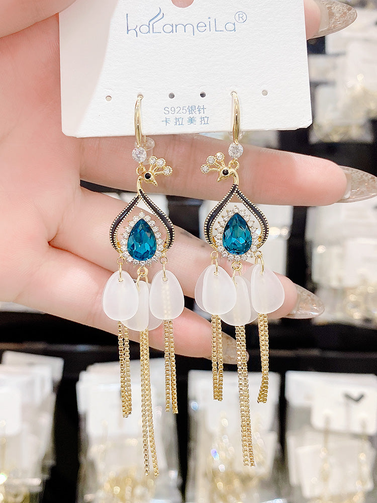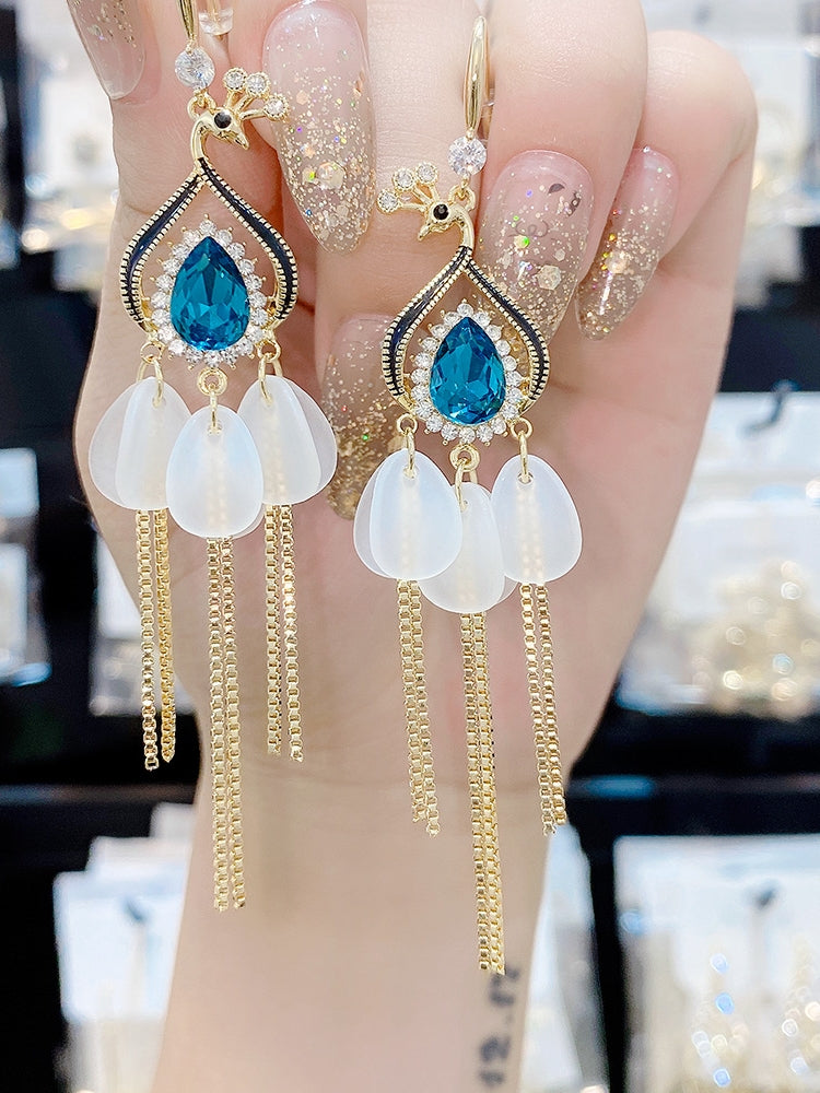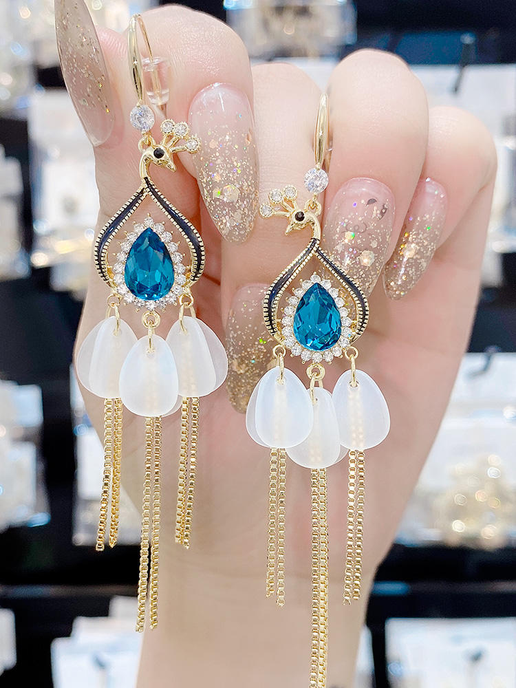 Phoenix Blau Kristall Ohrringe Lange Temperament Zubehör