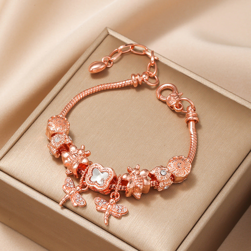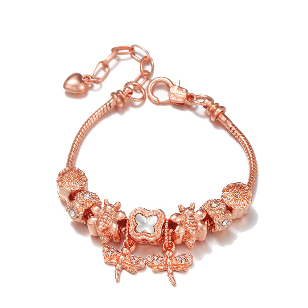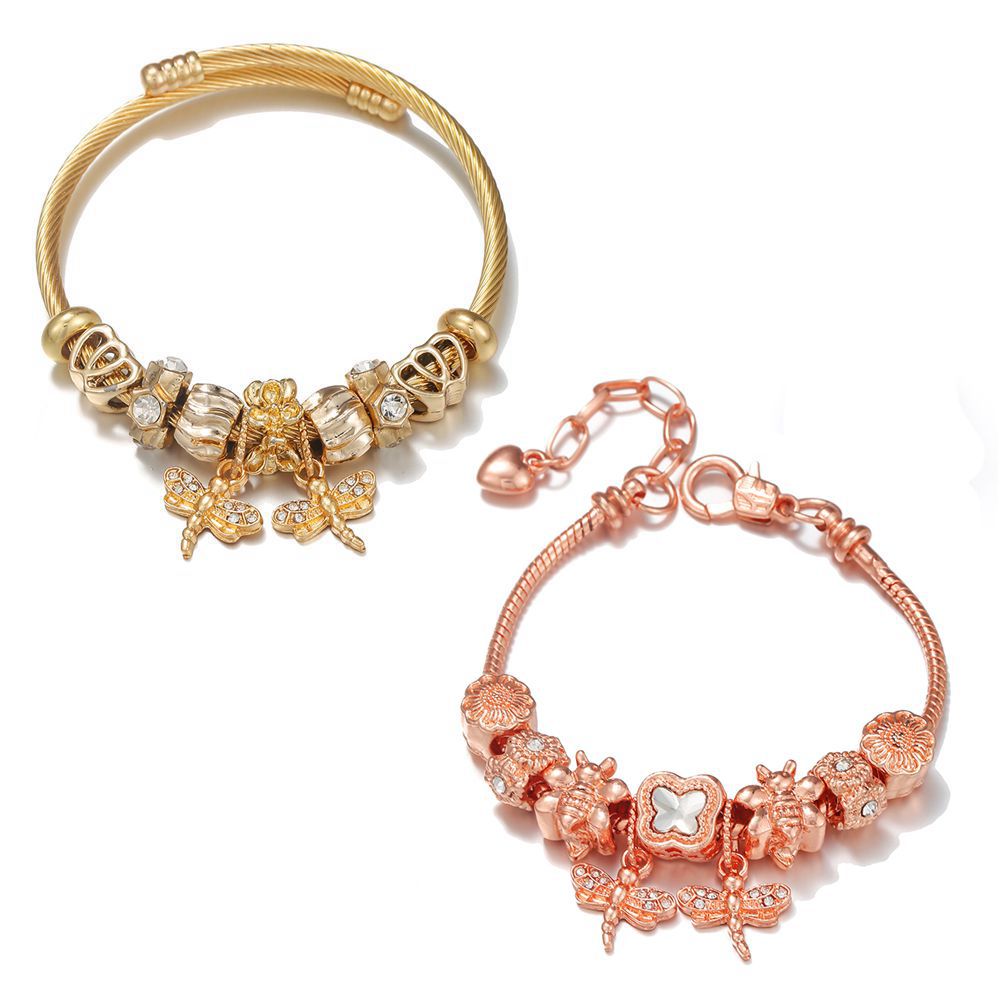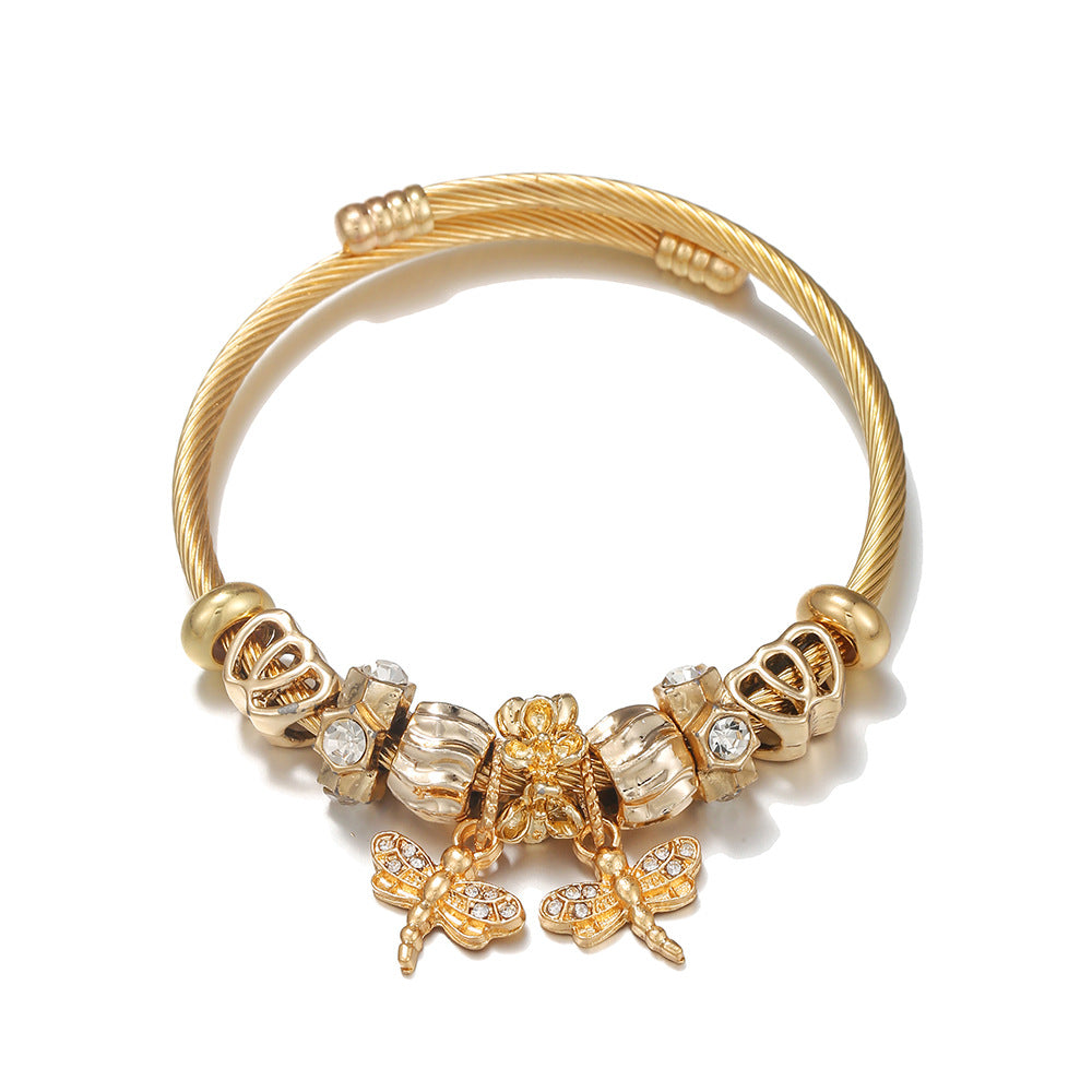 Pulsera abierta de bricolaje con colgante de libélula e insectos, joyería de metal, regalo de Navidad