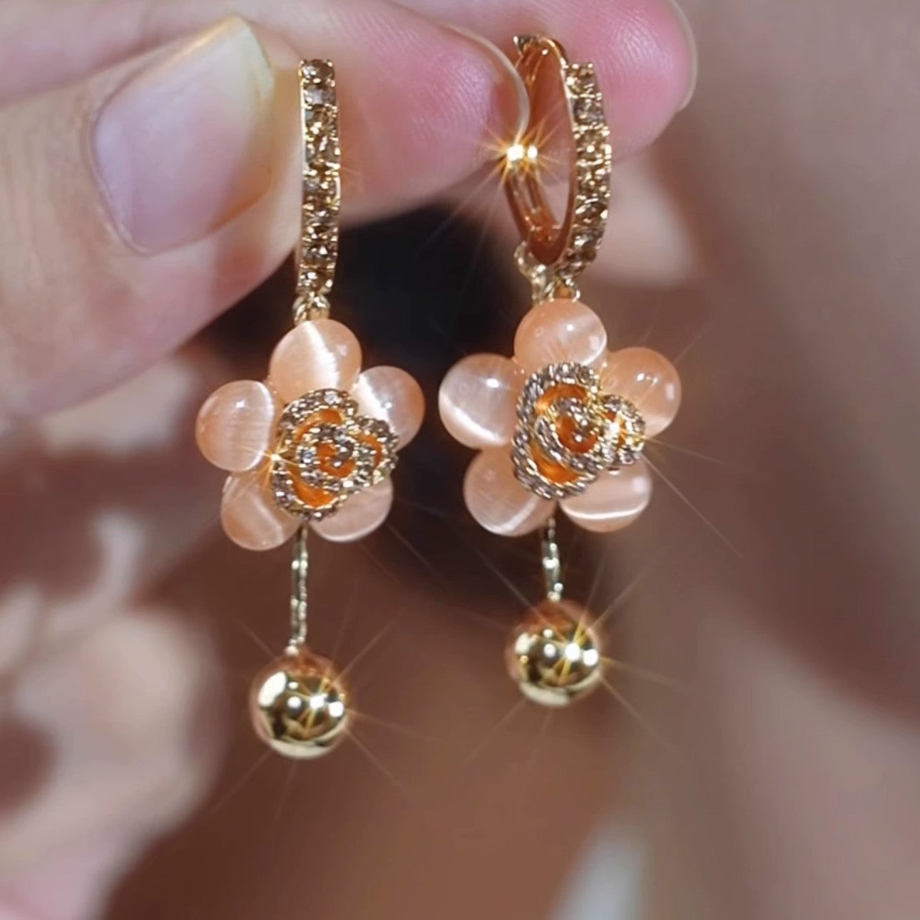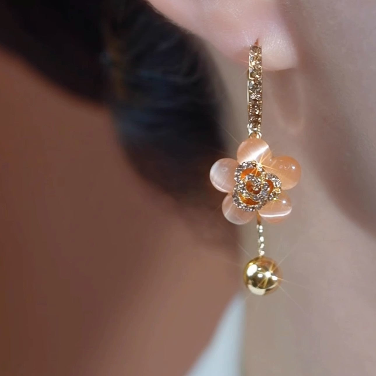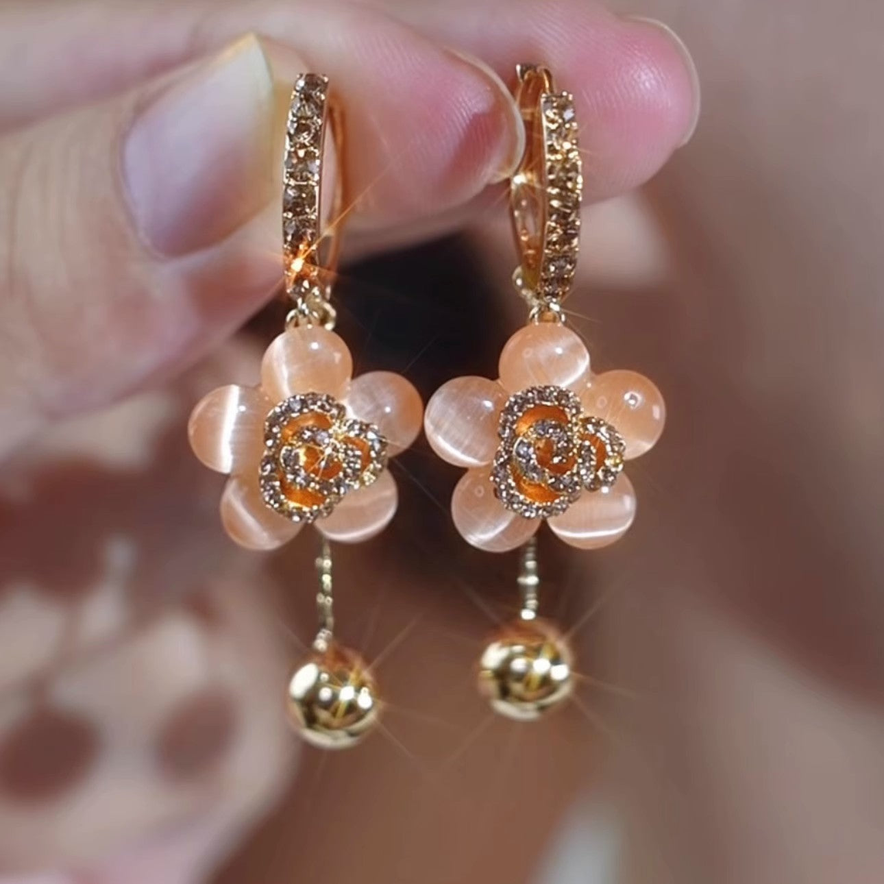 Exquisite Diamond Opal Flower Earrings Elegant Accessories