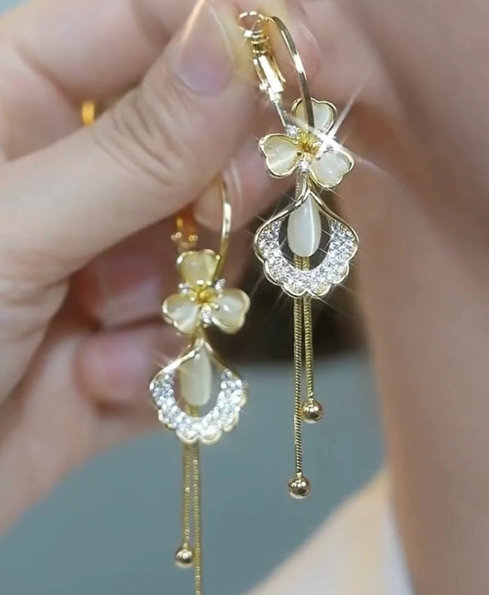 Pendientes de borlas con forma de ojo de gato y flores para mujer