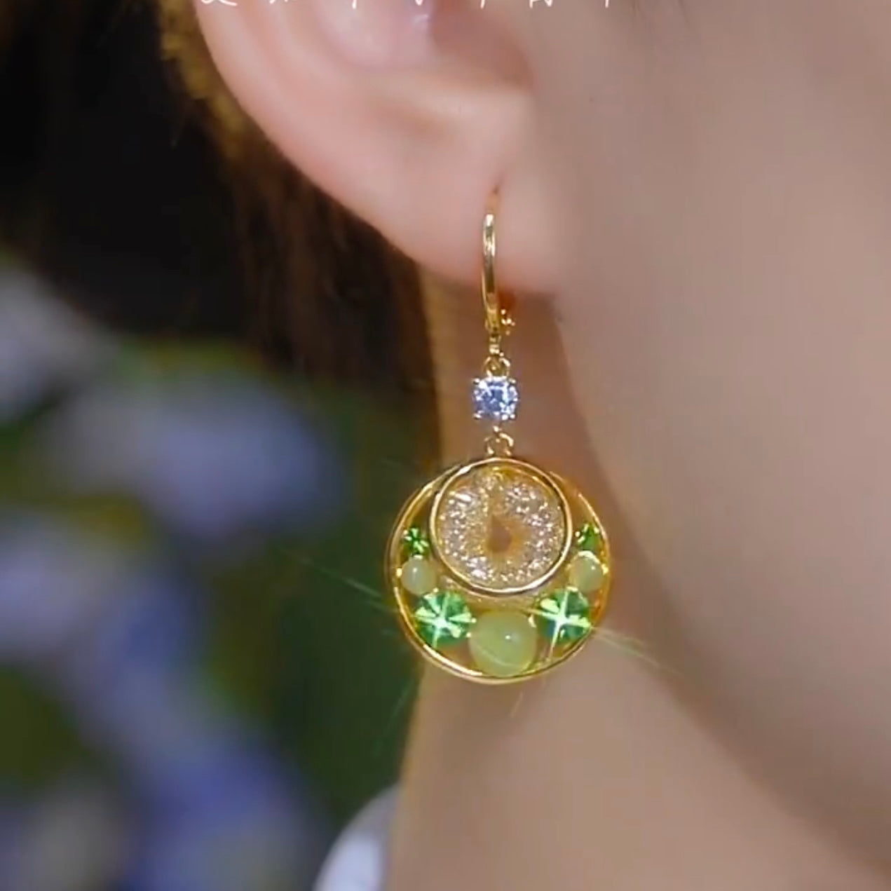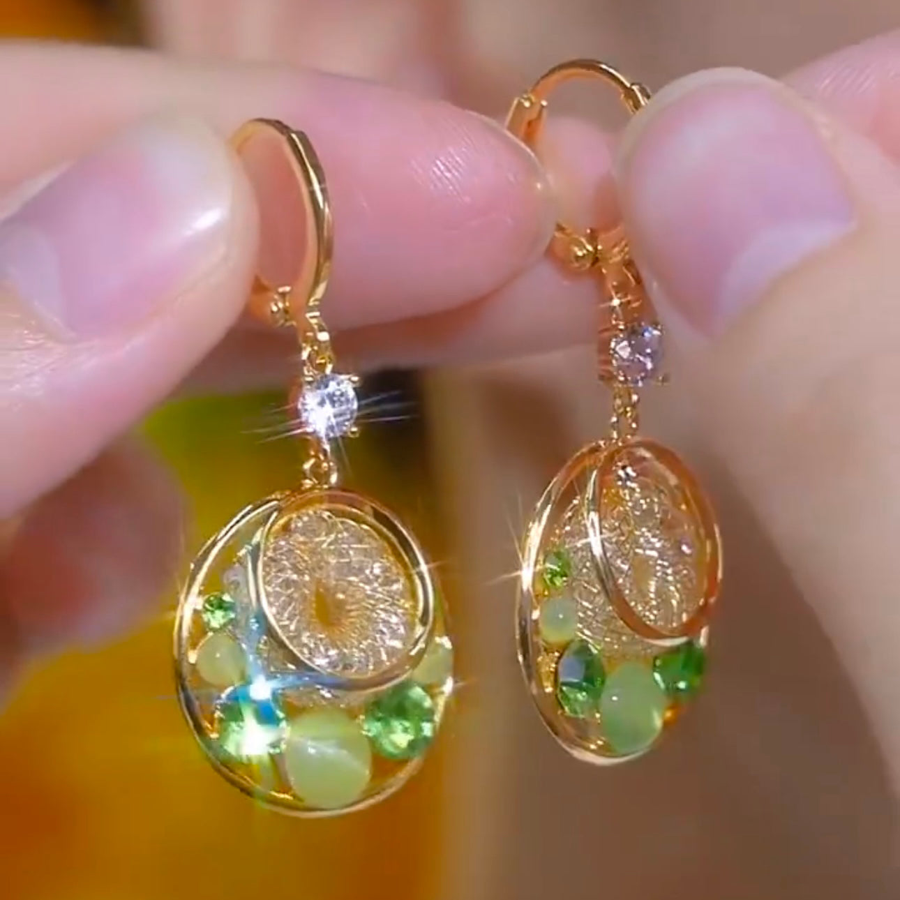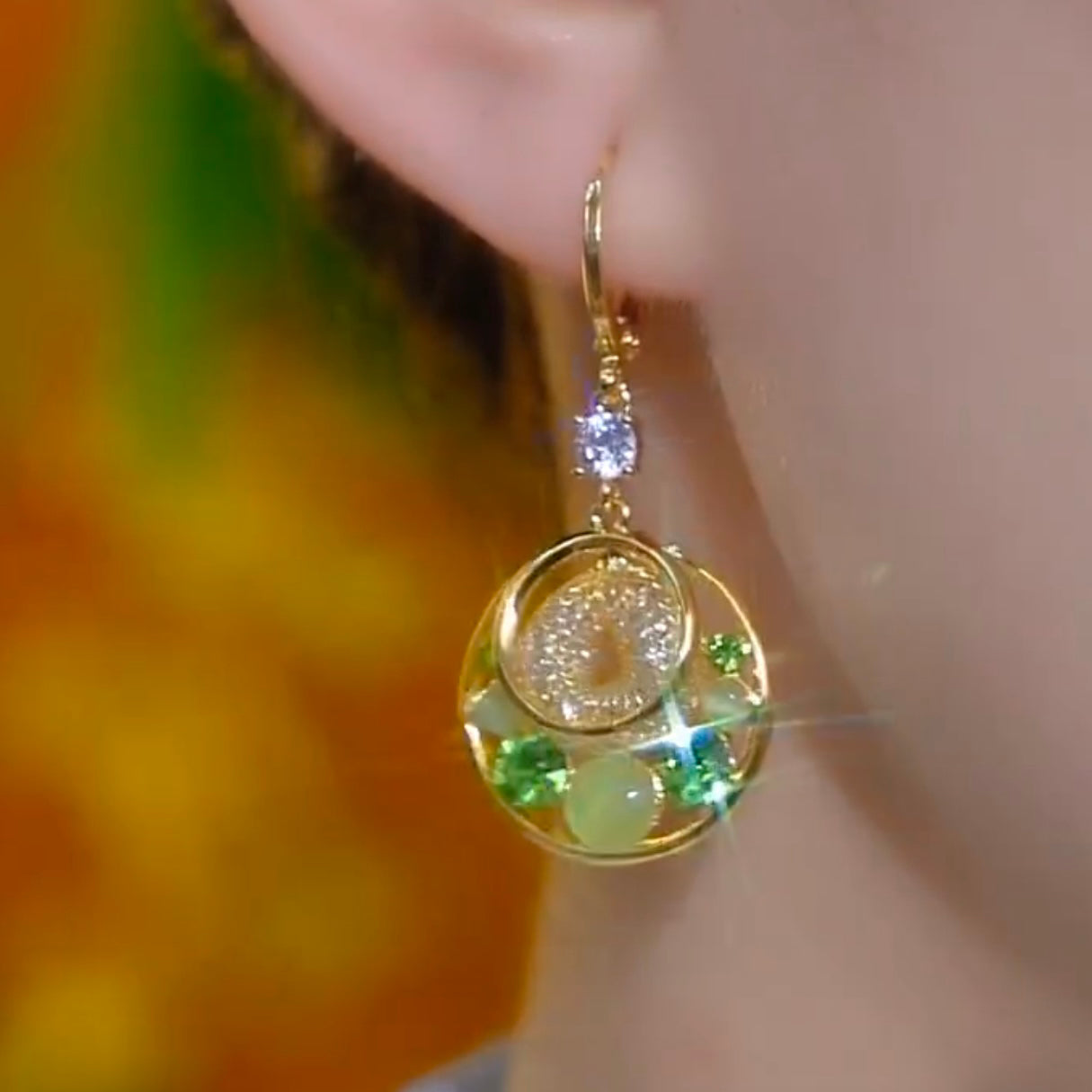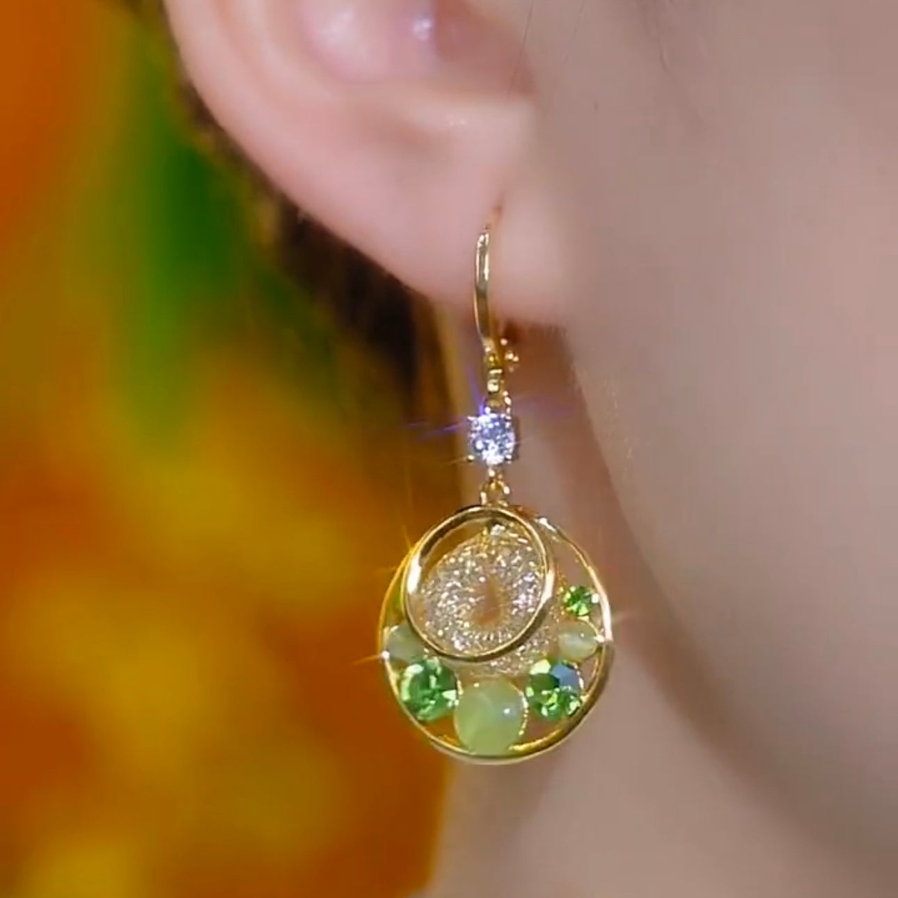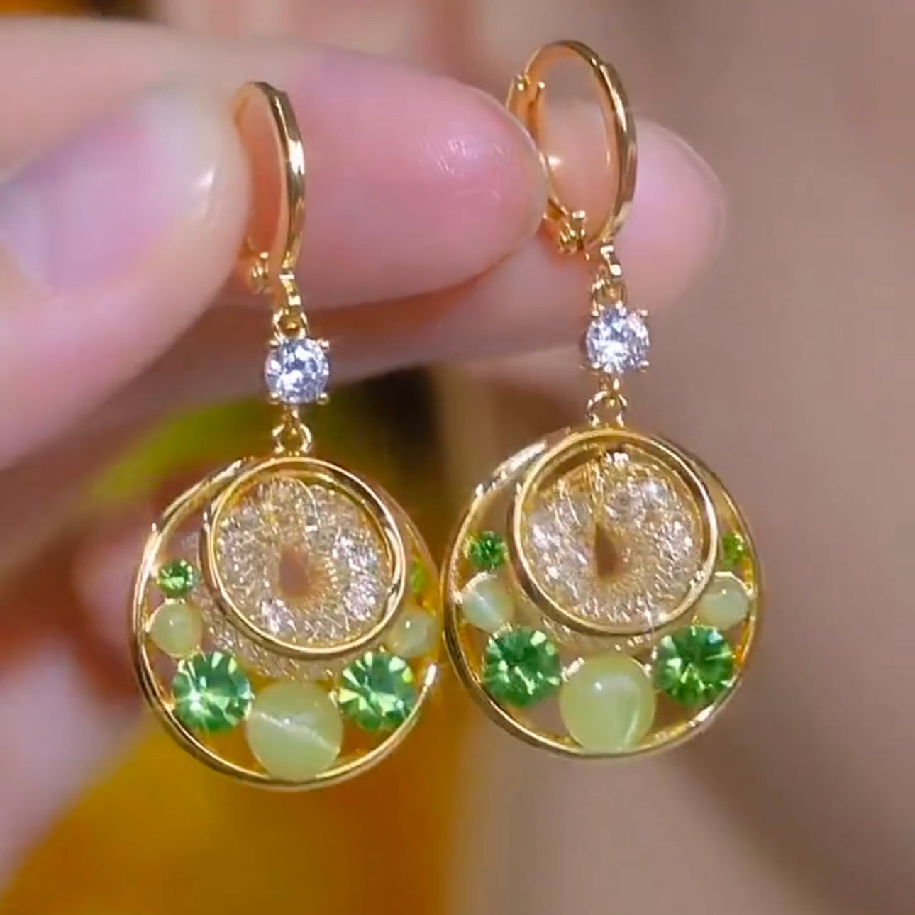 Fashion Circle Green Diamond Cat's Eye Earrings