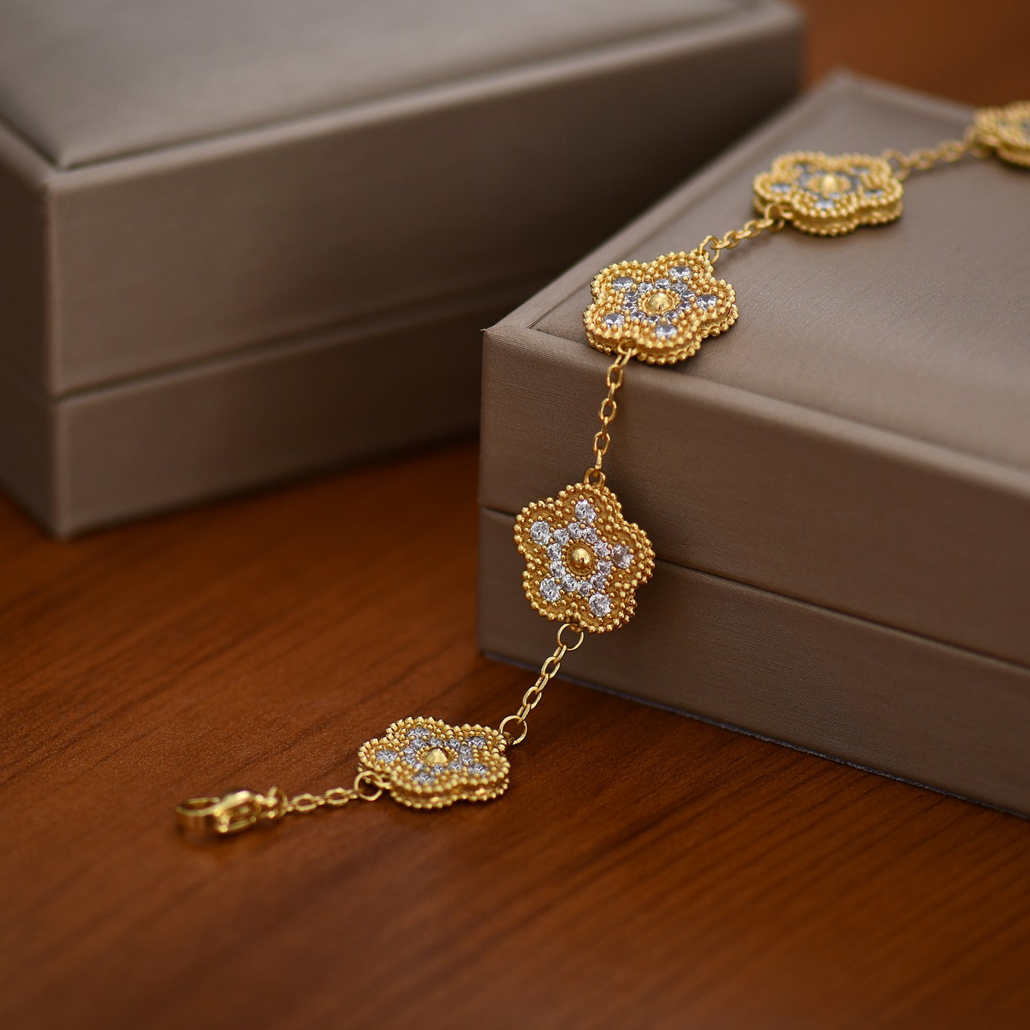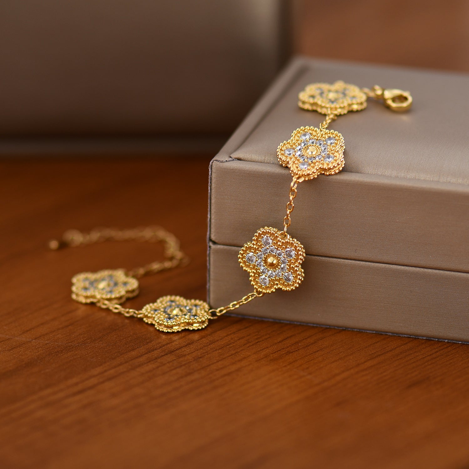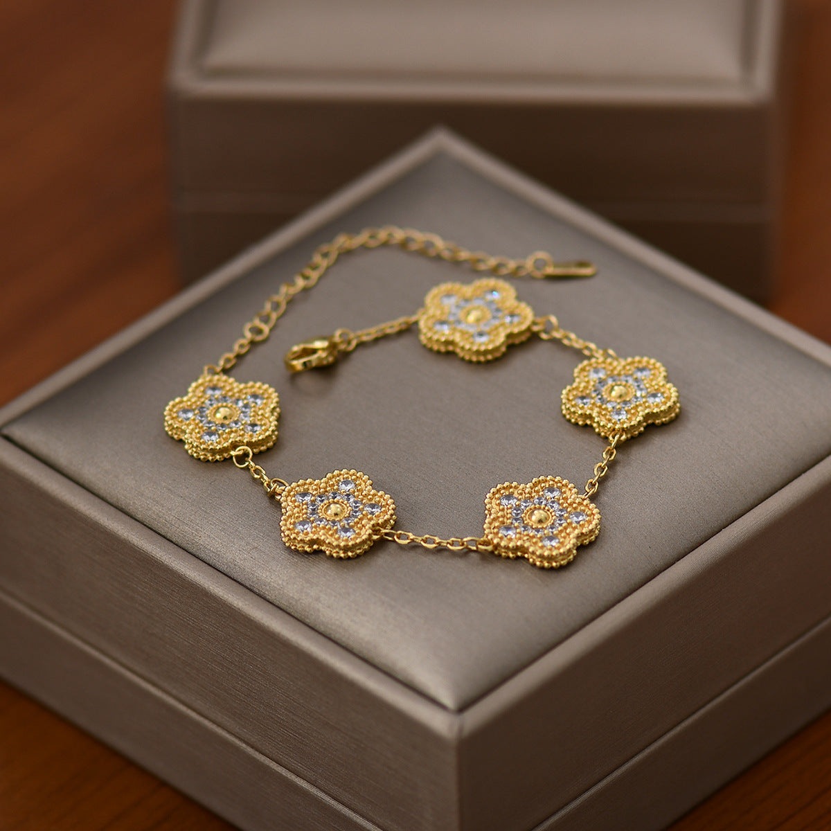 Joyas de moda con incrustaciones de circonitas para mujer Pulsera popular de cinco flores con trébol de cuatro hojas