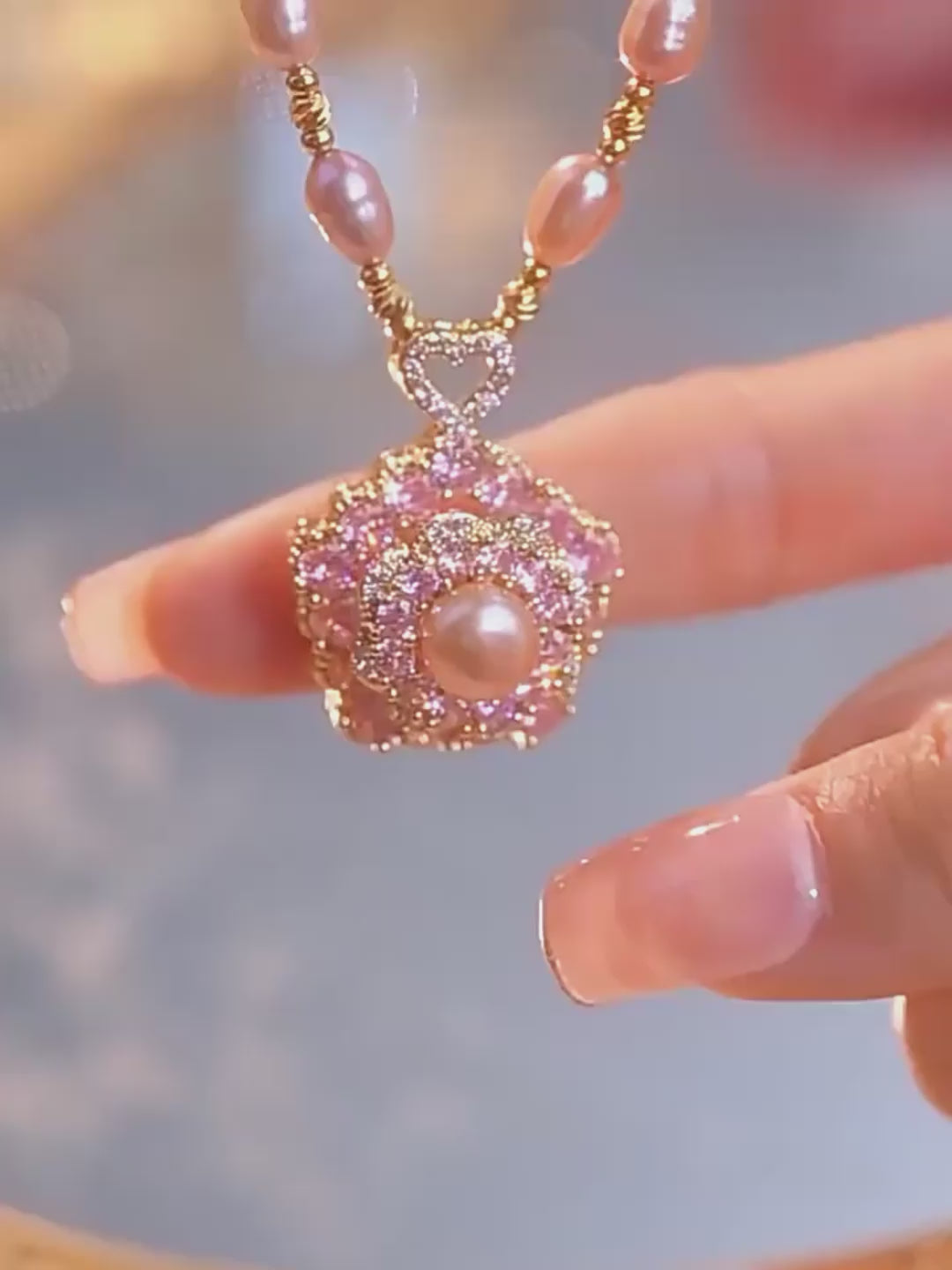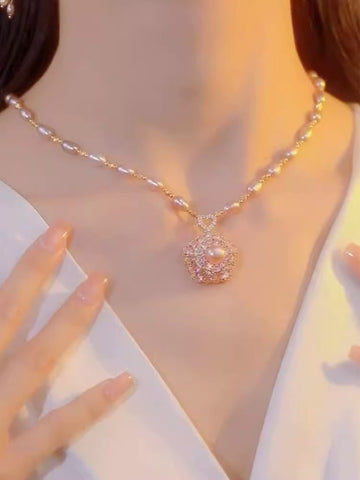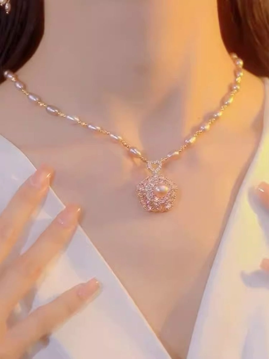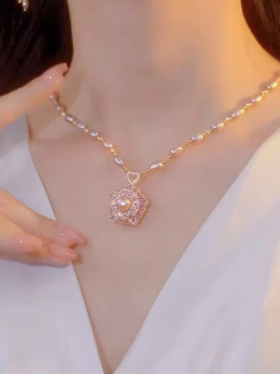 Collar de perlas con colgante de flores