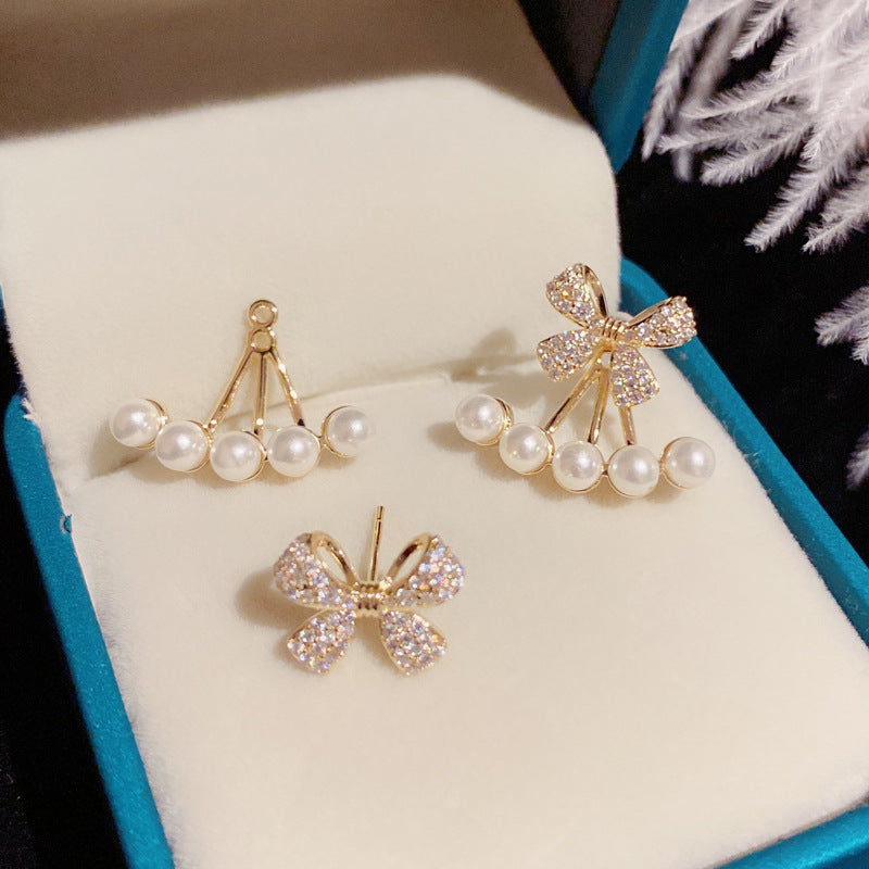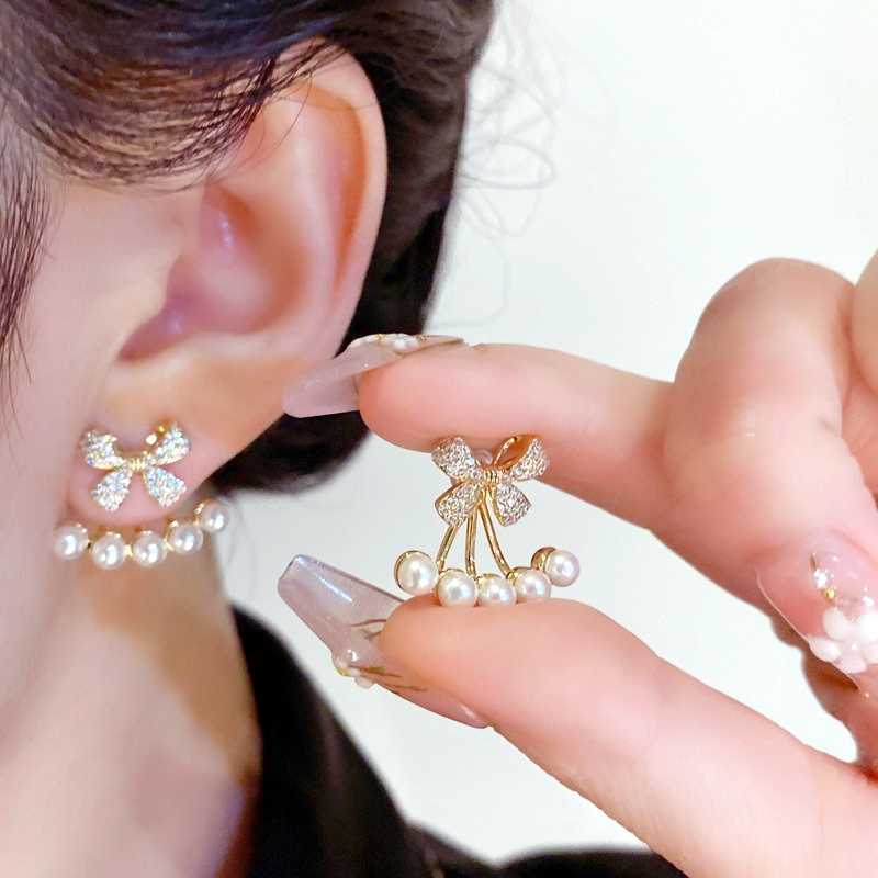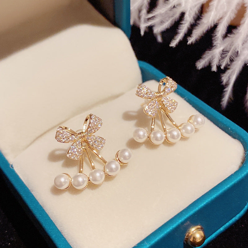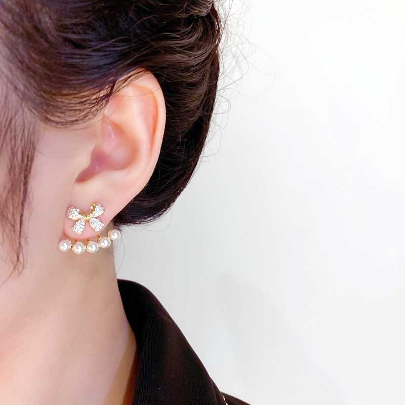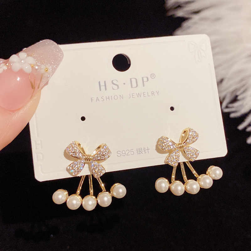 Fashion Sweet Bow Pearl Earrings Women S925 Silver Needle Earrings