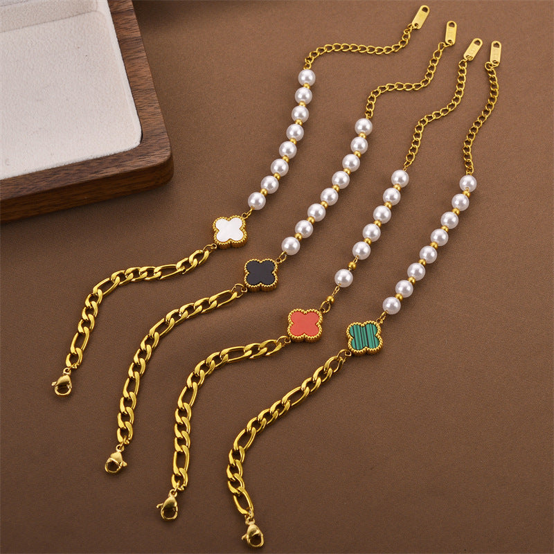 Pearl Four-leaf Clover Titanium Steel Bracelet Women's Fashion Bracelet