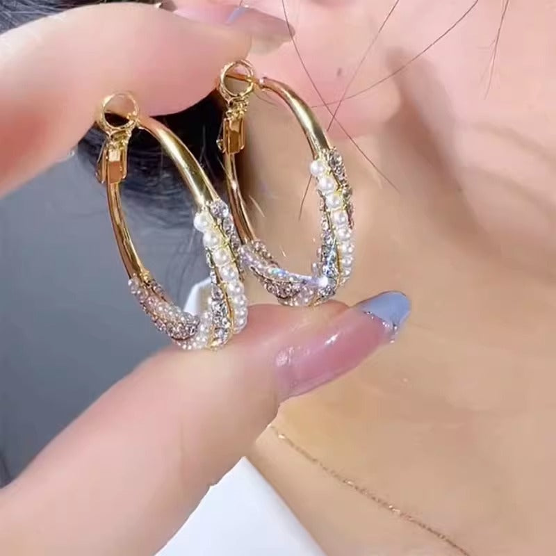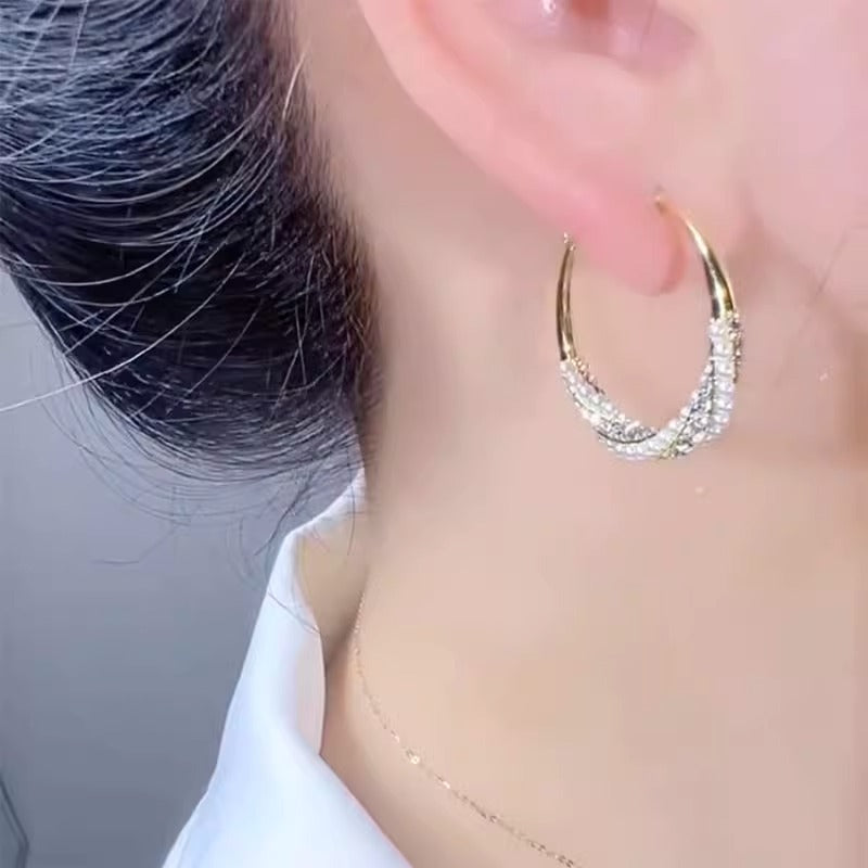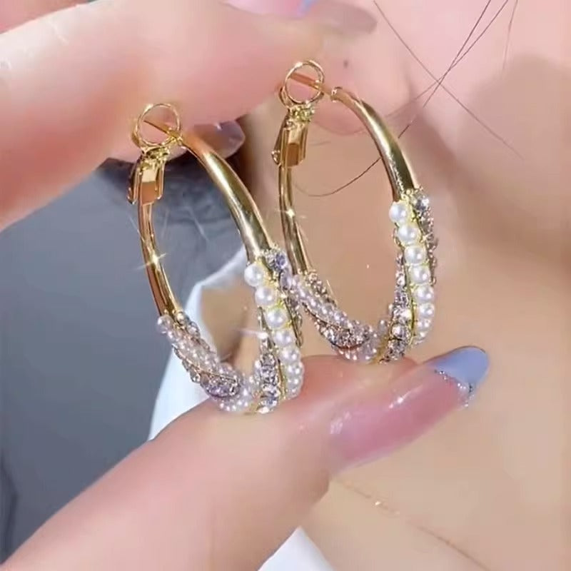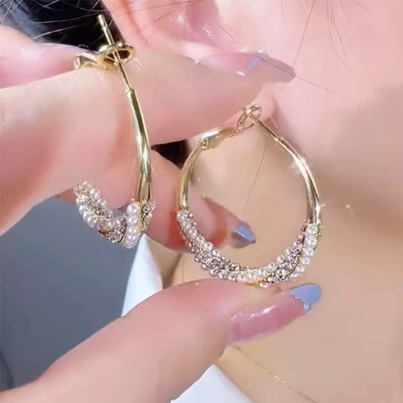 Design Sense Temperament Trendy Circle Pearl Earrings