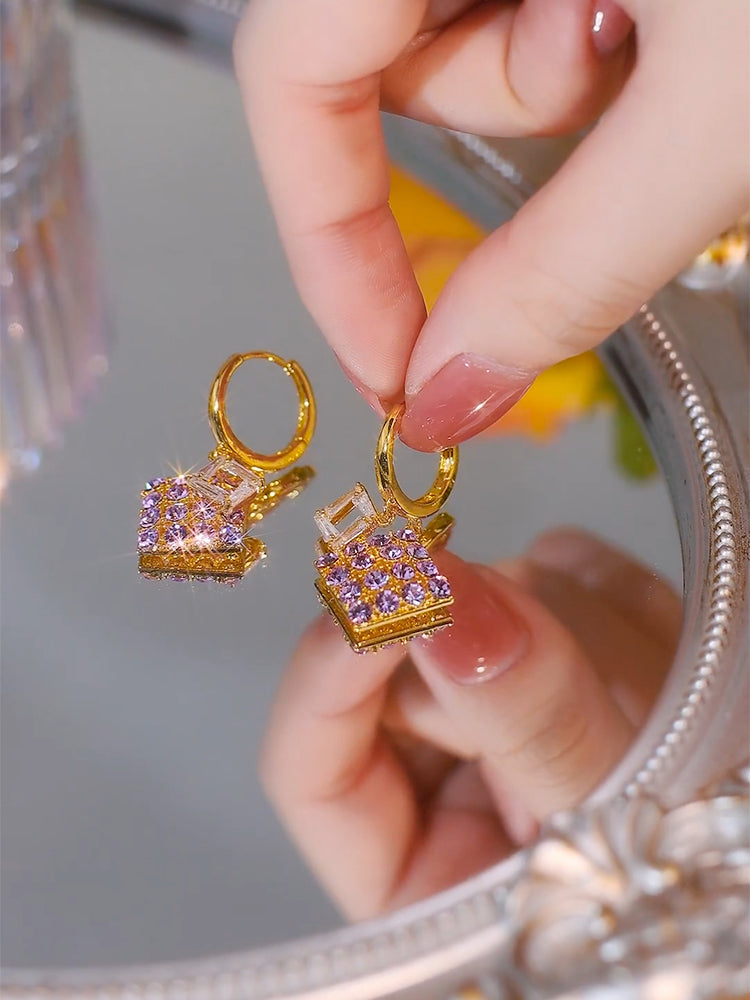 Purple Crystal Rhombus Tassel Earrings For Women