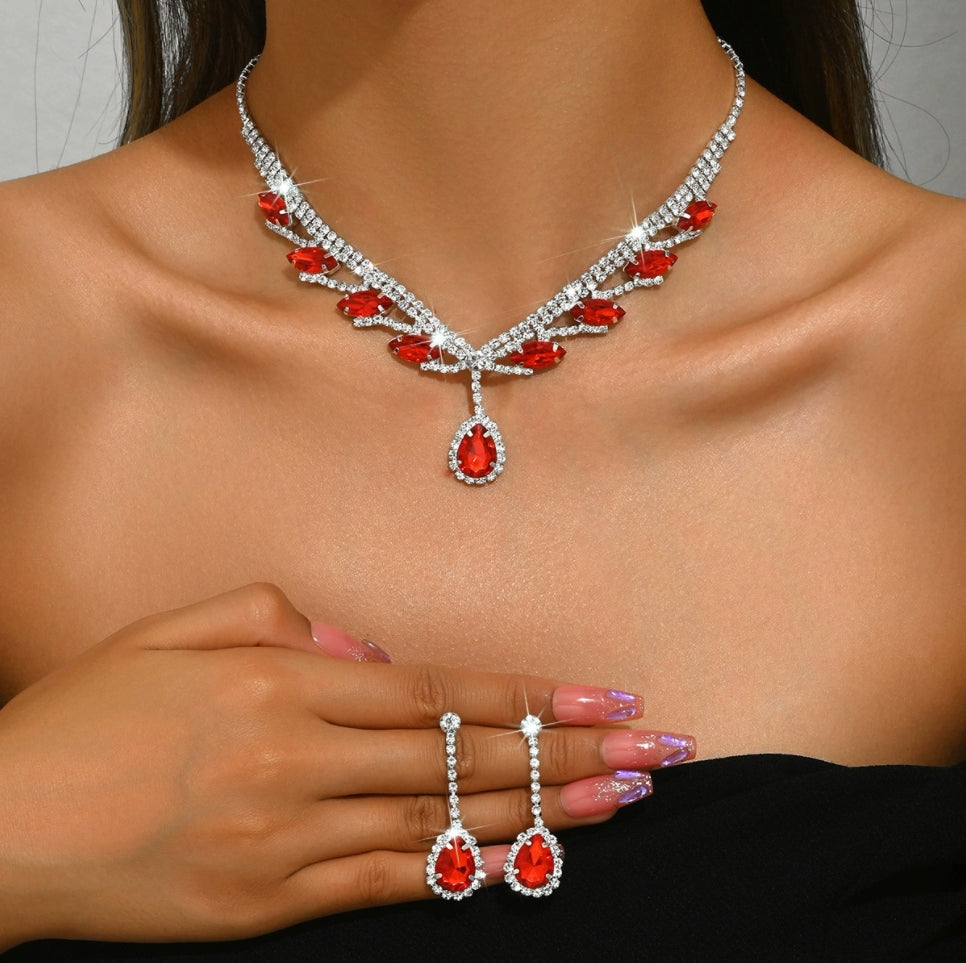 Women's Luxury Diamond Necklace Earrings Jewelry Gift Set